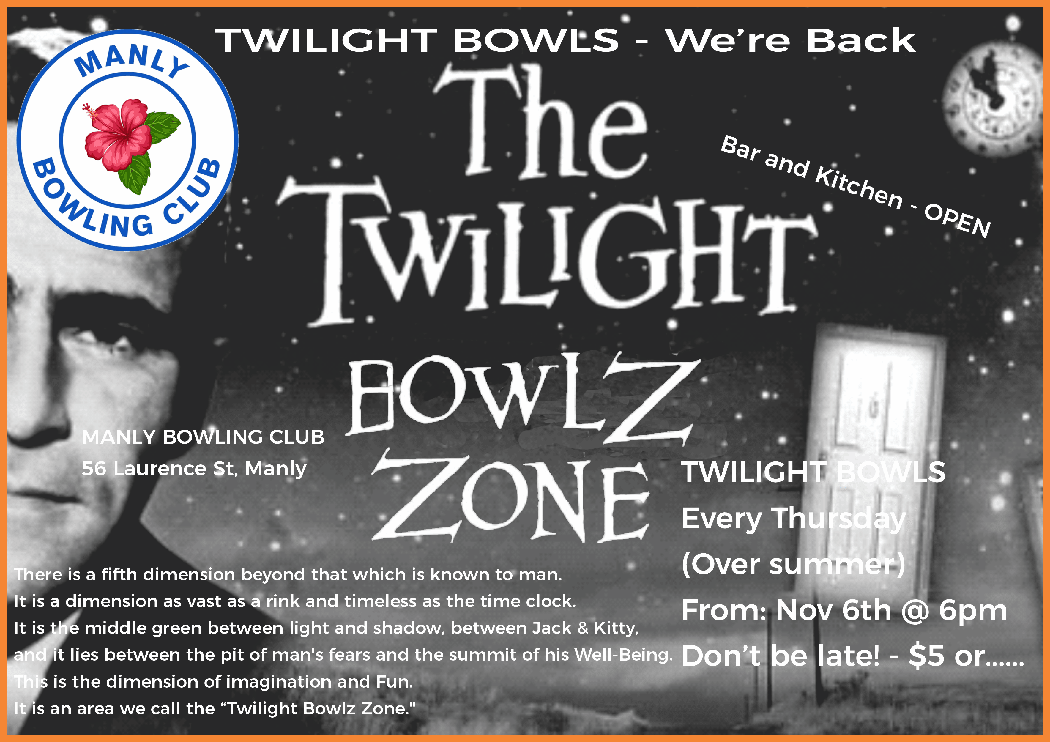 Bowls start at 6:00pm so come on down from 5:45 pm to register your attendance, and enjoy a cold beverage before the bowls gets underway.